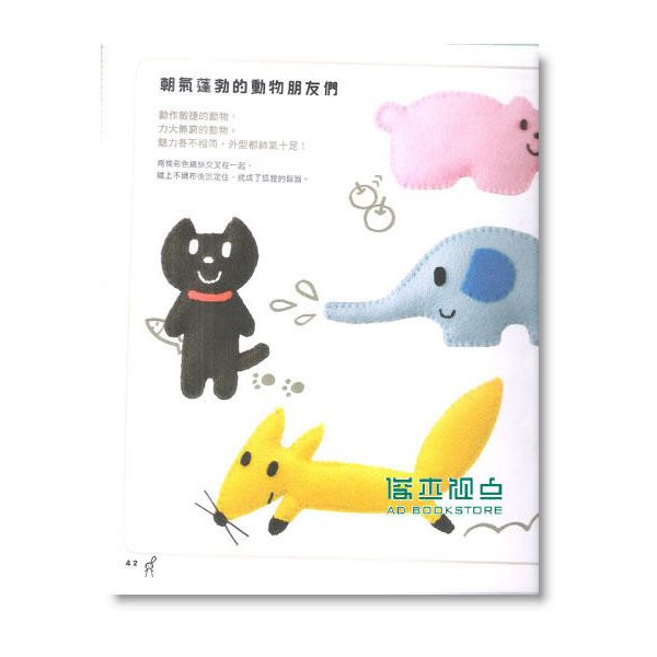 材料为不织布,做法超简单!马上就能动手做,附实物大小的纸型让我来介绍一下用不织布缝出来的朋友们吧!女孩、男孩、娃娃、动物、恐龙……都是我最喜欢的玩伴,还有蛋糕、点心、水果、花朵……都是一些令我爱不释手,将四季妆点得色彩缤纷的小东西。