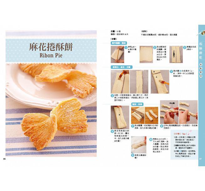 ③起酥餅乾:屬於香酥脆口感,經過裹油反覆摺疊,烤焙後會產生很多層次,因此具有膨脹效果。做好的千層派皮(起酥皮)可以有多種變化,但困難度較高,對於初學者而言很有挑戰性。