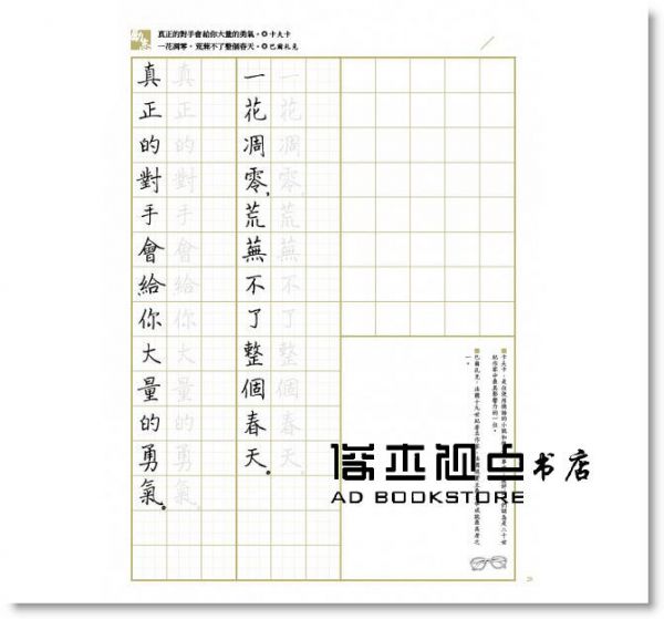 感謝你耐著性子看到了此處,也就是這段序文的尾聲,我衷心的期盼,本書可以幫助你否定我剛才說過的 ─ 練字是孤獨、枯燥的。