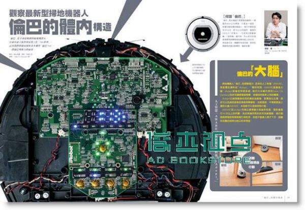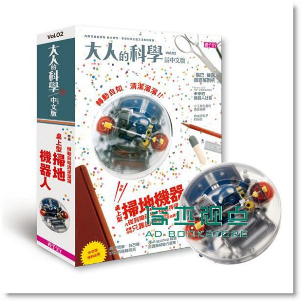 《大人的科學:桌上型掃地機器人》,以齒輪機械原理為主題,從日本傳統精緻的齒輪工藝介紹起,並採訪了全球最知名的智慧型掃地機器人——「倫巴」 的設計公司iRobot的CEO,暢談掃地機器人的設計原理,帶領讀者一窺機械原理加上智慧程式的應用與發展。再從人文角度介紹昭和時期的家電史,並邀請 清潔達人,示範各種除汙的方式。更有各領域改裝達人,示範如何為你的掃地機器人裝上閃亮的燈泡,或改裝成會移動的妖怪燈箱,各種KUSO創意,精彩好玩。