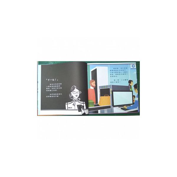 今天,飛機場會發生什麼好玩的事情呢?請拿一支手電筒照亮畫面背後,仔細觀察,從檢查護照的地勤人員、使用X光機掃描行李的海關人員,到駕駛飛機的正、副駕駛,跟緊囉!在熙來攘往的飛機場,我們將飛機場的裡裡外外,還有飛機內部的秘密都向你揭露,翻開內頁,你將深刻體驗空中旅行的樂趣。