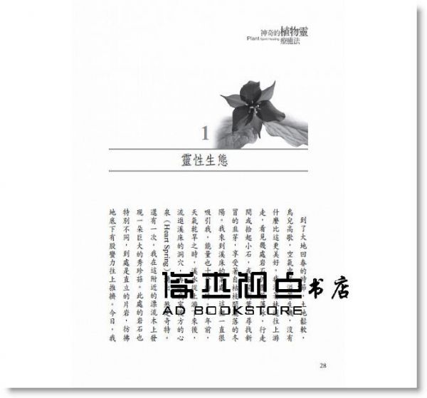的療癒作用。植物靈療癒法超越表面症狀治療的限制,深入到病根,協助我們與廣大的自然之網連結合一。植物的效用不限於化學成分,它們是具有高度智慧的存有,能夠提升意識,使真正的療癒得以發生。