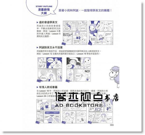 邊約會邊學英文阿誠與小莉的約會過程中,不斷出現練習英文的機會。例如:Lesson3遇到外國人問路;Lesson5撰寫英文履歷。