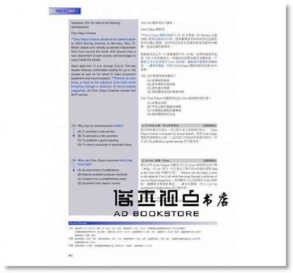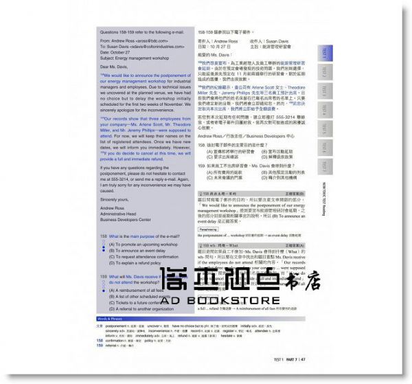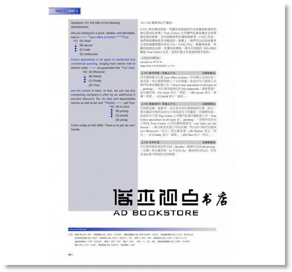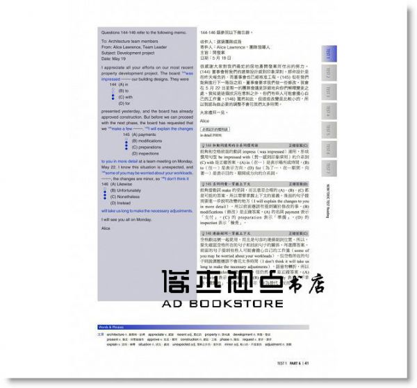 2. 獨家詳盡且易懂的解析全盤收錄 本書各題均有詳盡的解析,其中包括分段和整句翻譯、考題類型說明、題目講解、單字解釋,同時還有難易度指示、核心句子標明、必須記住的慣用語、替換表達方式等。一切只為讓考生徹底理解考題內容,獲得應試的信心,從容做完每道考題!