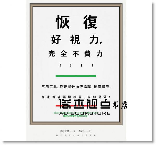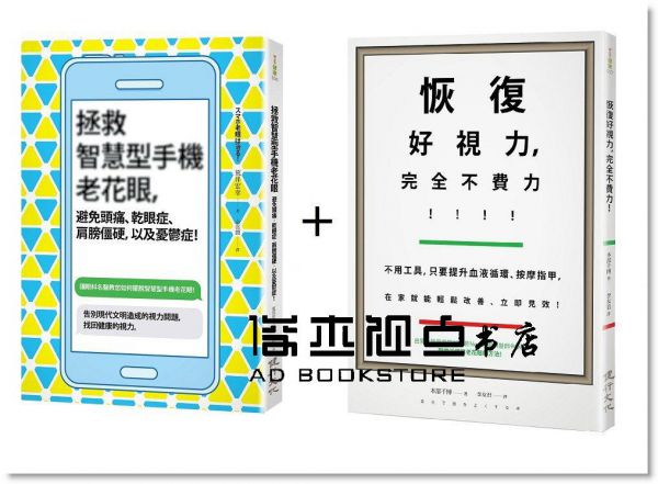 眼科名醫教你守護健康的視力套書(恢復好視力,完全不費力!+拯救智慧型手機老花眼,避免頭痛、乾眼症、肩膀僵硬,以及憂鬱症!) 自分で目をよくする本+スマホ老眼は治る! 作者: 本部千博, 荒井宏幸 譯者:李友君,余亮誾 出版社:健行 出版日期:2017/04/01 語言:繁體中文 定價:580元 ISBN:9789869430739 叢書系列:I健康 規格:平裝 / 352頁 / 15 x 21 cm / 普通級 / 雙色印刷 / 初版 出版地:台灣 內容簡介 不用工具,不必費力!在家就能輕鬆改善視力! 提升血液循環,立即見效! 擺脫現代文明病,眼科名醫教你守護眼睛健康!
