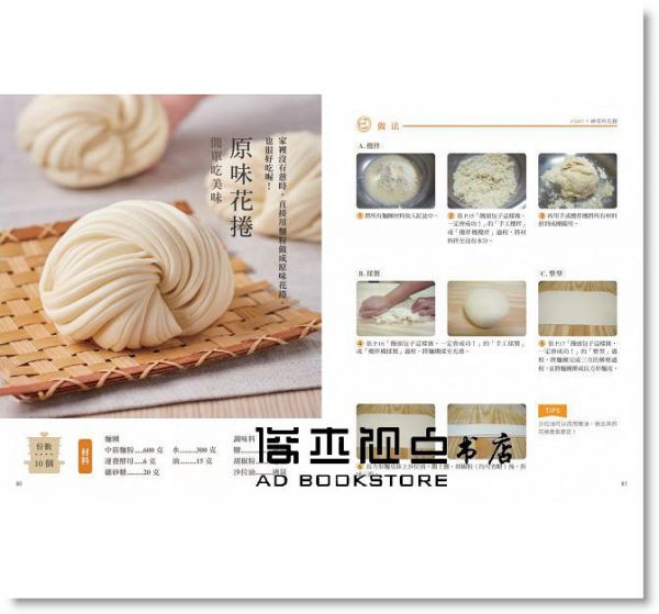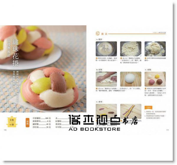 再多一點巧思的花捲絕對是饅頭的好朋友,包括:簡單好操作的原味花捲、耀眼的三色貝殼捲、最受歡迎的香蔥花捲、可自行配色的雙色花捲、台式漢堡包花樣刈包、顏色更繽紛的三色花捲、讓餐桌色彩豐富的三色蝴蝶捲、美到捨不得入口的黃玫瑰饅頭、小朋友最愛的三色蚌殼捲、美麗的藝術品繡球花捲,以及滋味無窮的銀絲捲。神奇的花捲,顆顆都百吃不厭!