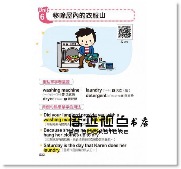 ◎ 生活居家 Unit 001 【起床】起床囉,一天開始了 Unit 002 【盥洗】用刷牙、洗臉喚醒自己 Unit 003 【化妝】將自己打扮體面 Unit 004 【早餐】早餐最重要 Unit 005 【打掃】將家裡打掃得乾乾淨淨 Unit 006 【洗衣服】移除屋內的衣服山 Unit 007 【下廚】自己動手做食物 Unit 008 【看電視】窩在沙發當couch potato Unit 009 【看書】閱讀是個好習慣 Unit 010 【寵物】超療癒的可愛寵物 Unit 011 【浴室】洗個澡,煥然一新 Unit 012 【睡覺】找周公玩耍