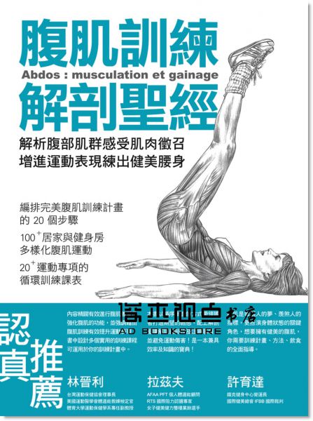 『腹肌訓練解剖學內容精闢敍述如何有效進行腹肌雕塑及強化腹肌的功能,不只提供理想體型塑造方法,也強調藉由腹肌訓練有效提升運動表現,書中設計多個實用的腹肌訓練課程可以參考直接運用於你的訓練計劃。』 -林晉利,台灣運動保健協會理事長/美國運動醫學會體適能教練檢定官/體育大學運動保健學系與研究所專任副教授-