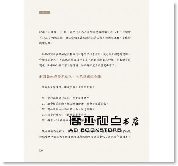 ◎靠薪水與股息收入,自己準備退休俸 想再和大家分享一則在網路上看到的故事: