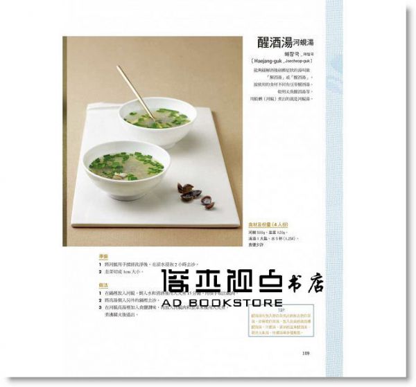湯 牛排骨湯 ‥ 117 乾白菜排骨湯 ‥ 119 精熬牛骨湯 ‥ 121 雪濃湯 ‥ 123 牛膝骨湯 ‥ 125 脊骨馬玲薯湯 ‥ 127 香辣牛肉湯 ‥ 129 蔘雞湯 ‥ 131 鮮辣魚湯 鮮辣河魚湯 ‥ 133 鱈魚清湯 ‥ 134 鮮辣鱈魚湯 ‥ 135 河豚清湯 ‥ 136 鮮辣河豚湯 ‥ 137 海鮮湯 ‥ 139 花蟹湯 ‥ 141 魚子湯 ‥ 142 貽貝湯 ‥ 143 泥鰍湯 ‥ 145