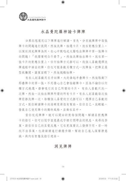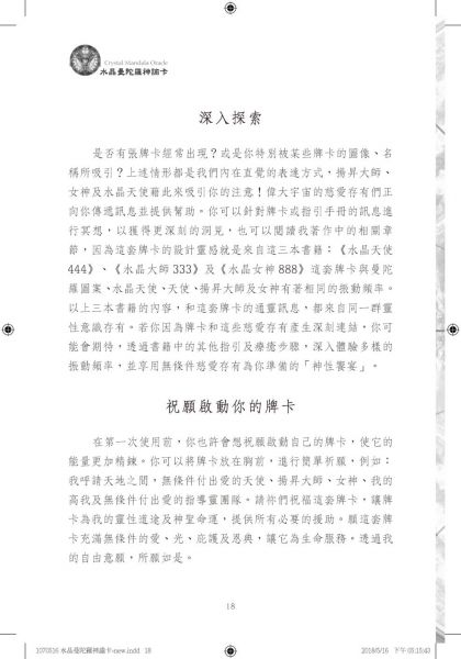 6. 本書延續並內附阿蓮娜推出的水晶曼陀羅神諭卡-水晶天使444系列,共18張水晶曼陀羅圖卡,提供進階水晶天使療癒訊息,高頻水晶結合神聖幾何圖,能量相當細緻美麗!