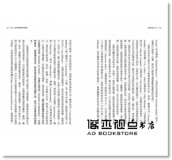 他與團隊歷時八年研究,從75個國家、超過5000位高階經理人的創新資料,並親訪蘋果的賈伯斯、亞馬遜的貝佐斯、eBay的歐米迪亞、Skype的詹士莊、PayPal的提爾等超過百位利用破壞性創新改變局勢的CEO,以及革命性產品與服務的發明者,他發現這些創新力高的人都有類似的行為模式,就像他們共通的DNA,歸納出他們創新構想的產生方式,揭開創新者共通的五大創新技巧。