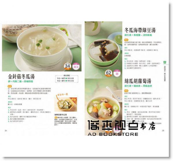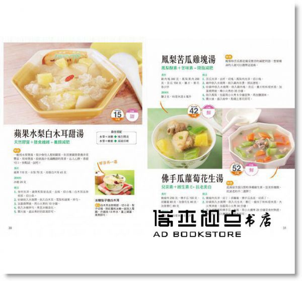 2.收錄各種體質和對象適合的湯品,從幼兒、發育中的年輕人、辛勤工作的爸媽,到中老年人,一本學會滋補全家人的煲湯祕訣。