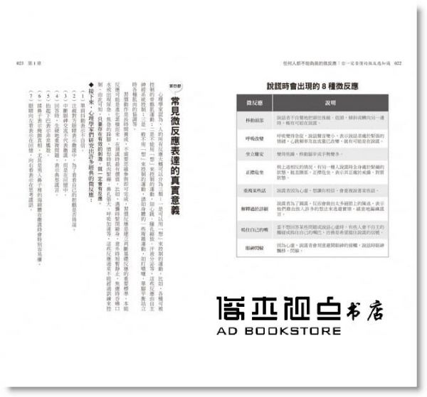 微反應是一種本能反應,不受思想和意識控制,難以掩飾和偽裝,能反射出一個人內心的真意。在社交場合,看穿對方心思,讀懂對方心意,比聽對方表面上的排場話更重要,並能透過這些微反應找出對方的生活習慣和興趣愛好,在交流和互動上,就能取得主導權,創造良好的溝通氣氛。