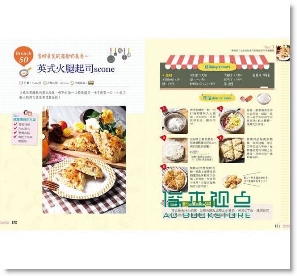 1.全書為廚房懶人、小家庭、上班族、留學生等量身打造省錢不失敗早午餐的食譜!
