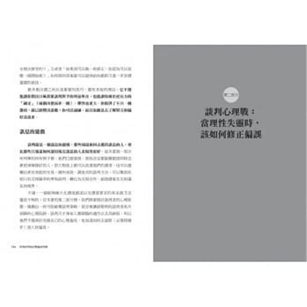 本書特別收錄一般談判講座和書籍不太重視,卻和在真實世界中成功談判息息相關的各種主題。這些建議均來自於眾多談判者的經驗,以及多年以來對於談判、策略、決策、心理學、經濟學各方面的系統科學研究。