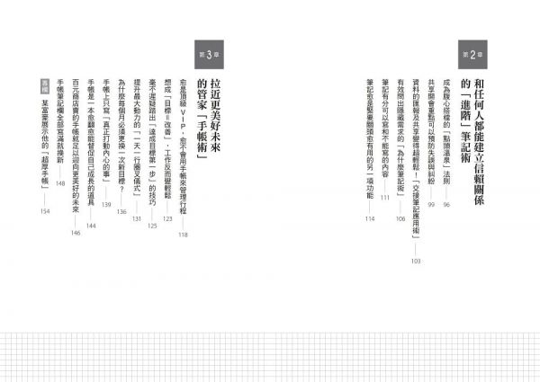 ◎第二本筆記:目標手帳──為自己打造美好未來 作者說:手帳的功能是創造美好未來,而他目前遇過的每個富豪,他們的手帳也都是用來改善「未來」,而不是管理「現在」。