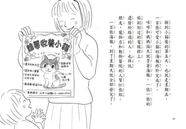 咪咪放學回家途中,撿到一隻被烏鴉攻擊的小貓。她和媽媽一起送貓咪到醫院治療,還一起悉心照料,但媽媽說:「我們住公寓,不可以養貓啦,而且養貓要花錢耶。」 自從爸爸過世後,咪咪好多事都必須放棄,即使心裡好想留下小貓,也不敢開口要求。 媽媽的同事幫忙做海報到處張貼,咪咪也四處問同學,看有沒有人要收養小貓,可惜一直找不到。房東太太隔天就要把貓送進收容所了,咪咪好擔心啊,她決定帶著小貓離開……