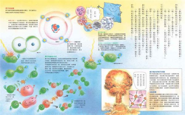 為什麼核能、原子彈的威力那麼大? 汽水、乾冰是怎麼形成的? 水泥、塑膠、紙、玻璃等有哪些用途? 鹽、糖、醬油、酒等調味料是怎麼製成的? 肥皂為什麼能去除污垢呢? 原子是一種微小的粒子,是構成所有物質的基本單位,像是我們看不到的空氣、吃的食物、穿的衣服、使用的器具和燃料都是。當不同的原子結合、相互作用,就會產生許多有趣的化學變化喔!