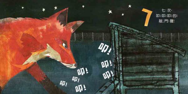 •榮獲美國多項大獎及書評星級推薦肯定! •繼《母雞蘿絲去散步》之後,充滿懸疑、趣味的繪本! •獨特的數數書,懸疑氣氛讓小讀者忍不住一頁接著一頁閱讀,結局絕對讓人意想不到。 1隻好餓好餓的狐狸, 轉動著2顆骨溜溜的眼睛,四處覓食…… 3隻胖嘟嘟的母雞,最好小心點呀!