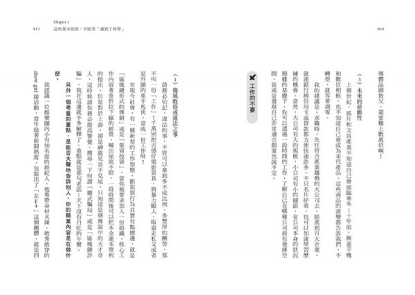 在傳媒界工作多年、看過職場眾生相,劉涵竹從文字記者到踏上主播台,去年毅然辭掉人人稱羨的主播工作,成為自由媒體人,經歷各種職場的厭世倦怠期,她深深感受到:工作這件事情得做個三、四十年,只靠一入行的熱情和夢想,一定會心累、遇到挫折和瓶頸;在職場的道路上,必要的心機能讓人少走一些冤枉路,別白白消耗拚勁和成就,最後身心俱疲。與其夢想辭職、空想斜槓,現實是得先工作、經營「自己」這個品牌,未來才有機會不工作。 目錄Chapter 1 這些基本原則,不能等「遇到了再學」原則1:先想清楚,工作的「必要」和「不要」原則2:迷信「樂在工作」,一定會遇到瓶頸原則3:你的「工作自由」,可以持續三十年嗎?原則4:找工作之前,先找自己的強項原則5:要為每一份工作設定年限原則6:聽到主管一直提到「成長空間」,要小心原則7:「優秀」不是零失誤,而是懂得修正錯誤原則8:上班痛苦得想死?你真的可以有其他選擇! Chapter 2不怕受挫的勇氣,修正錯誤的實力打扮服飾,是取得基本分數的第一步多聽少說的乖寶寶,主管最頭痛不懂一定要問,但別每件小事都請示被打槍很正常,偷學並立刻修正才是真本事主管同事都很忙,別等著大家來認識你嘴甜打招呼,是最有效的職場加分技巧出差旅遊回來,別再買整盒伴手禮了主管不是爸媽,別要他們主持辦公室公道同事,就是「一同做事」的人網路上的交際圈,別把私生活全攤開 Chapter 3 在對的時間彎腰,就不是委屈同事背後陰你,請默默的記在小本子上被嫉妒不是壞事,但你要懂得低調不樹敵現在的取暖小圈圈,未來是職涯絆腳石表現好、業績高,不一定能升職加薪應酬,是「與人往來」的技術說完「嗨」之後,讓人想和你聊不停的說話技巧就算知道是客套話,也能打動人心的說話術感覺迷惘、想離職時,先去投履歷面試看看 Chapter 4 在即將來臨的轉折點,你準備好了嗎?想加薪卻不敢談錢,是傷自己的感情除了專注力,更要學會「一心多用」的技術不靠公司和頭銜,你還能是個「咖」嗎?工作這些年,最怕優勢只剩年資不爽不要做,是最糟的退路隨時觀察業界變化,為職能「加值」都是主管職,該去大公司?還是小公司? Chapter 5 好聚好散、完美落地的真功夫離職就像離婚,不是真的想走絕對別提離職時,感謝那些讓你不好過的人關於前公司,永遠都要說好話聽到同事要離職,別急著想挖八卦再怎麼想進某家公司,絕對別用人海關說戰術最快上班日,一定要說兩週後主管職、高薪資?先打聽清楚這水有多深想為自己工作,先確認這三點 Chapter 6 這些名人在職場上堅持的基本功嚴凱泰─若財富不是唯一目的,你的夢想必須更高更遠陳海茵─在最精彩的時內容簡介加薪被拒、升職無望、同事擺爛……為什麼愈有拚勁的人、愈容易自找委屈?