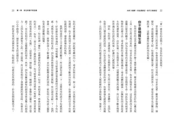 本書會描述你們的思維方式,其系統化特徵及衍生的問題,還有你們的集體意識所打造的社會面貌,以期你們能改變這些現象。因為除非你先看到這一點,接受這項事實,然後帶著覺知來轉化自己的意識,否則你無法改變任何事。換言之,除非你了解到自己被灌輸了什麼觀念,並且明白社會中的哪些部分對你本身和靈性的進化有害,否則你會受困其中。