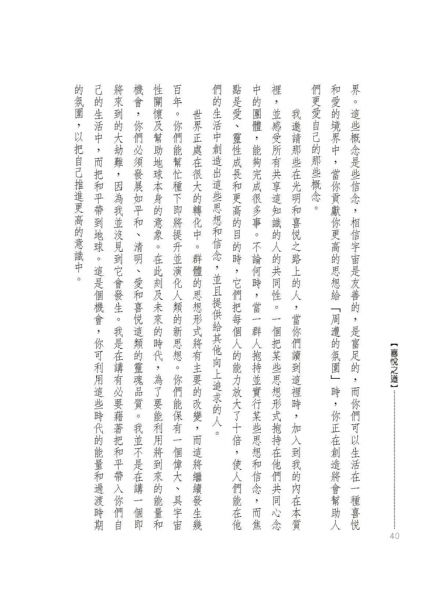 當你閱讀此書並勤作練習,你將愈感到生氣勃勃和自信滿滿。無論你周遭發生什麼事,你都能保有一份內在的平靜感;你會更喜愛並享受你的生活;你會期盼每一天的到來;你將學會如何不受其他人和外在事件的負面影響,而擁有正面的展望;你將會吸引更多美好的事情到你生命中來;你將擁有更為喜悅的生活! 目錄推薦與分享 歐林的前言 作者序 第一章 歐林向你問候 第二章 你能喜悅地生活 第三章 化負面為正面 第四章 愛自己的藝術 第五章 重視自我價值 第六章 認識你的真正力量 第七章 統一分裂的自我 第八章 明白心的智慧 第九章 敞開來接受 第十章 欣賞、感恩與增多律 第十一章 感覺內心的平靜 第十二章 獲得平衡、穩定和安全感 第十三章 清明─活在更多的光中 第十四章 自由是你與生俱來的權利 第十五章 擁抱新事物 第十六章 大躍進 第十七章 活在更高的目的裡 第十八章 確認你此生的目的 附錄 讀者的故事 致謝詞看更多