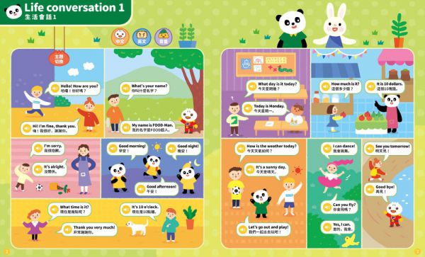本書收錄220句簡單日常的英文會話與句型,加上176個必學英文單字,為孩子奠定基本英文基礎,讓孩子從小學習並熟悉日常生活的英文語法和語感。