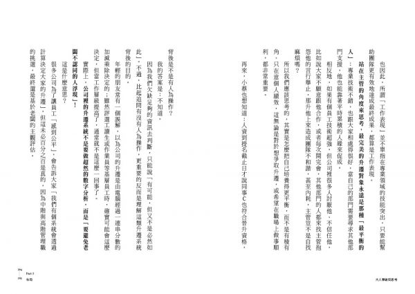 長期而言,公司的評選機制還是符合「某種」公平概念,而這套「公平機制」並不僅僅指電腦系統裡那些分數,而是在績效考核分數之外、高層沒有明說的評選標準。這些隱而未宣的原則未必會寫在員工手冊中,如果能看懂,就會發現職場突然變得超級公平......