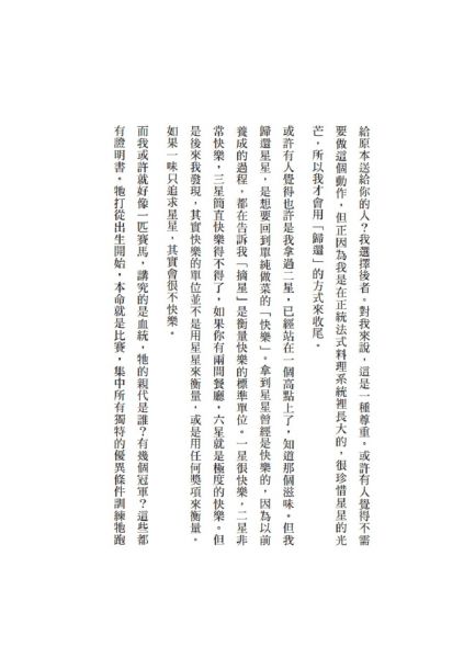 我也以「平衡」來領導一個團隊,管理各家餐廳,思索每位客人完美的用餐體驗所該具備的一切細節。「平衡」如同我在料理上的「八角哲學」,是一種工作方程式。每個人每天的工作內容可能都不一樣,但運用這個公式,可以幫助我們在工作和生活之間找到平衡,讓工作變成美的。