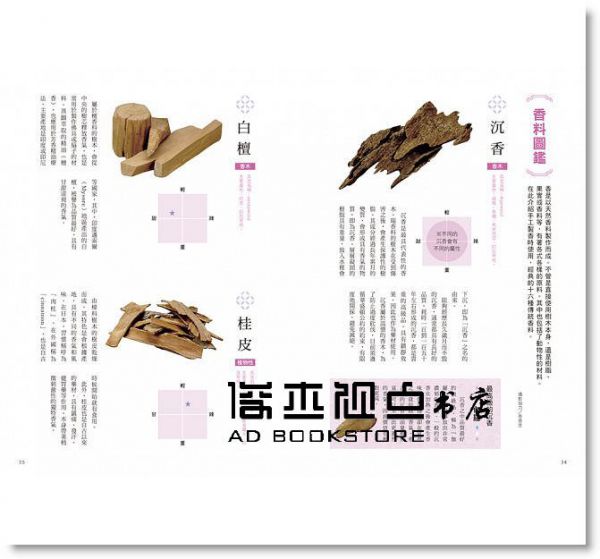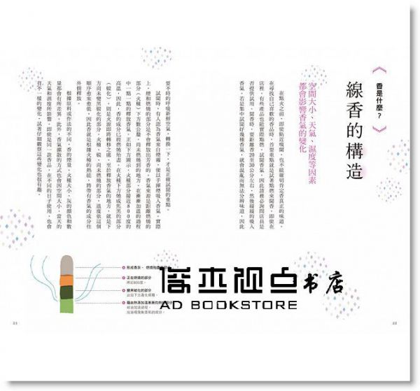 ◎詳細解說香的基礎知識,從香的種類、品香方式、手工香的作法、使用的香料圖鑑、簡易調香配方,到香的運用,以及歷史由來等。全面解晰,如同香道入門小百科。