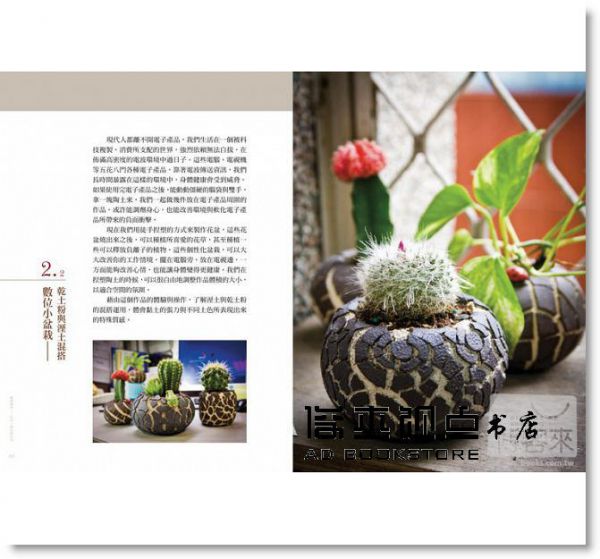 ★一千多張製作步驟圖與詳盡解說 在技術方面,從取土與洗土、練土與揉土、徒手捏塑、陶板成型、手拉坏等基本技法,書中以1000多張製作步驟圖與詳盡解說,讓讀者可以跟著模擬實際操作,對陶藝整體製程能有深入的了解。以珍貴的「天目碗」為例,本書著重拉坏技法的訓練,讓讀者藉由最單純的工法與造形,搭配單一掛含鐵釉漿,就能燒出多彩層次,有如銀河天體般的美感。