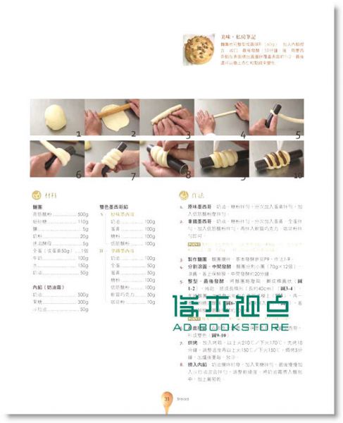 開始動手前必知的事04關於麵包必知的基本知識06做麵包必備的基礎技法Chapter1麵包篇雋永特色的台式麵包09基本麵團-直接法10基本麵團-中種法11基本麵團-湯種法甜點麵包-菠蘿麵包12菠蘿皮4種13菠蘿夾心14菠蘿麵包16哈密瓜18布丁菠蘿20丹麥菠蘿-紅豆麵包22香榭紅豆麵包24紅豆麵包25雪之戀Q心-奶油、奶酥麵包26克寧姆麵包27玉米奶昔麵包28奶油螺卷29維也納軟法可可30雙色墨西哥32炸彈麵包34起酥麵包-其他麵包36椰子餐包37牛奶麵包38紫薯起司麵包40歐克麵包42奶香小羊角44歐香羅宋46神木麵包48麵包甜甜圈50麵包美味內餡鹹點麵包52香蔥&玉米火腿麵包54番茄芝多司56熱狗小卷57黃金蛋皮卷57香蔥肉鬆卷60咖哩麵包61橄欖形麵包4種62調理麵包10種吐司麵包64彩虹吐司66蛋糕吐司68台式椰奶吐司70丹麥紅豆吐司Chapter2蛋糕篇台味十足的西點蛋糕73做蛋糕必備的基礎技法74瑞士卷76小海綿蛋糕77椰子蛋糕78海苔蛋糕卷80虎皮戚風蛋糕卷82奶油棋格雙色蛋糕84水浴蒸烤乳酪蛋糕86麵包の蛋糕88巧克力椰奶凍卷90水蜜桃奶凍卷92蛋塔93椰子塔Chapter3糕點篇招牌的人氣伴手糕餅95製作糕餅的重要用料96基本示範-水油皮97基本示範-千層酥皮98常用糕餅內餡100台式鳳梨月餅102鳳梨酥103黑糖鳳梨酥104蓮蓉酥106綠豆椪108蛋黃酥109咖哩豬肉派110芋泥酥111牛奶酥112菊花酥113老婆餅114太陽餅115奶油酥餅116澎湃Q餅