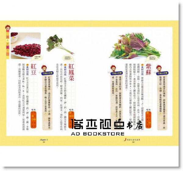 ?7?7讓「五行娃娃」教你挑食、教你烹飪,集中攝取缺乏元素,彌補缺陷!缺乏火元素,應該多吃哪幾種食物?顏色看起來紅澄澄的蔬果,它的屬性就是火嗎?該如何搭配飲食,才能補充匱乏元素、節制過剩元素?貼心的五行娃娃,列出了最具代表性的「元素蔬果」,更進一步提供讀者「元素食譜」,讓您利用「元素食療」,吃出一家子健康!