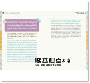 戴老師敢於表演、敢於醜化自己、敢於在要求學生之前先要求自己。也因為如此,在我去北大高中觀課時,看到學生上課時的參與和師生中間熱烈的交流。當然,這個流暢的課程後面是無數小時的備課和演練及縝密的研究與思考。而這一本書,就是戴老師的心血結晶!無論學生的英文程度如何,他們都可以在這本書中學到課題也學到英文!