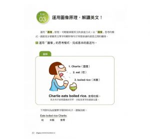學會本書的教學方法,運用文法時腦海中就會浮現的相關圖像,只要依圖像順序來連接每個單字,便能下筆寫出完整的句型。用圖像協助記憶整個句子與文法,永遠都不會忘記!
