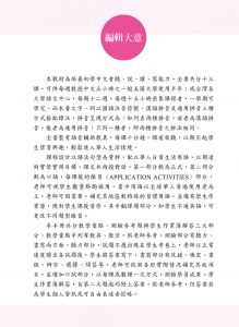 ☉本手冊共分教學重點、測驗參考題、學生作業簿解答三大部分:教學重點中列有教具、教法,供老師參考;測驗部分有聽力、書寫兩大方面。聽力部分,試題不應出現在學生考卷上,老師以正常速度讀出各試題後,學生將答案寫下;書寫部分有填空、重組、辨字、選擇、問答等,老師可依照各班實際情況補充其他項目,並增加口試部分,以每課或數課一次方式,測驗學習成果。學生作業簿解答則提供參考答案,供老師批改或檢討時使用。