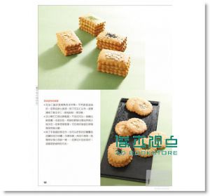 書中將餅乾分為五個單元:小西餅Cookies麵糊類/乳沫類、脆餅乾Biscuits膨鬆劑餅乾/酵母餅乾/硬脆餅乾、Crisp egg roll, Gaufrettes, Liege Waffle壓模餅乾,更包括油炸餅類/泡芙餅類/糖霜餅類…等的Others其它餅乾、以及吐司/起酥皮/玉米棒/水餃皮/白飯…現成食材運用製成的餅乾。每一個單元都有最完整的介紹,除了詳實的配方外,更附上清楚的步驟圖,再搭配上120分鐘的DVD,每一位讀者都可以沒有困惑的在家製作書中所有的精巧餅乾。